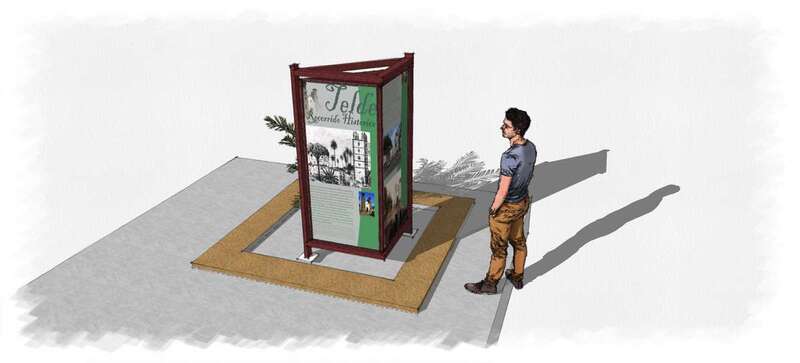 El recorrido continuará por la calle Portería –con las cruces y la entrada a San Sebastián para recordar la historia y tradiciones religiosas-, el Árbol Bonito, donde se colocarán varios bancos de descanso y se evocará a los escritores y poetas de la Escuela Lírica de Telde; y el Callejón de la Fuente, recordando la antigua fuente que abastecía de agua a la zona, la Heredad de Aguas y la Noria de Jinámar.