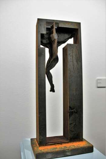 Telde.- Una exposición con 15 piezas recorre 20 de los 50 años de trayectoria del escultor afincado en la ciudad. El dibujo del acero estará abierta en la Casa-Museo León y Castillo hasta el 26 de mayo. TA ofrece crónica y reportaje gráfico de Jesús Ruiz Mesa.