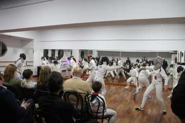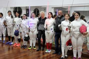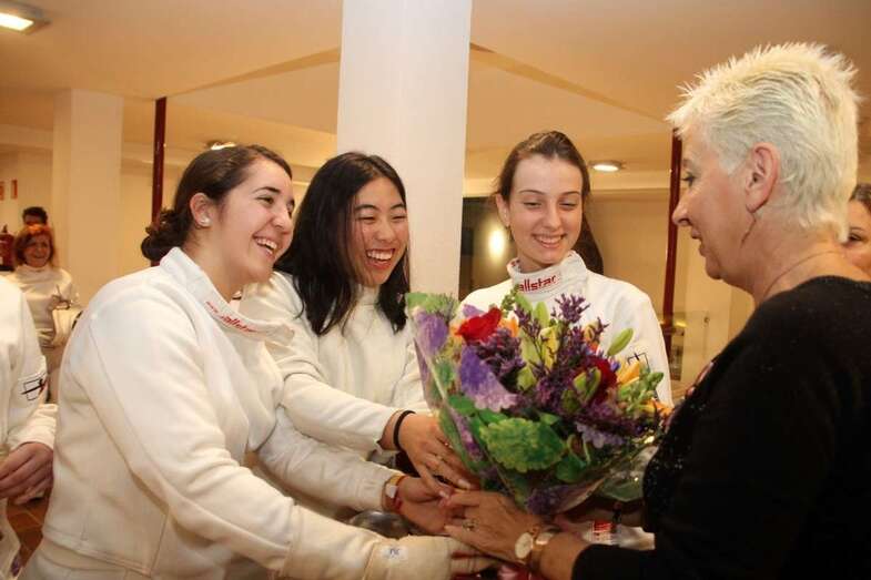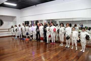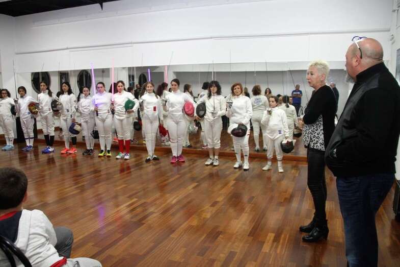 Rosa Montoro expresa el agradecimiento y presencia del público, amigos, familiares y aficionados y de las deportistas participantes en sus diferentes edades siendo un logro este encuentro exhibición de la esgrima gracias igualmente a Francisco Reguero, presidente de Ceiscan, entrenador y a José Sosa Serván cuyo hijo práctica esgrima también, del que hemos recibido la invitación. Hoy van a realizar un ejercicio de improvisación valor añadido en este acto porque muchas de ellas se acaban de conocer y previo ensayo por la buena práctica de ser excelentes tiradoras mostraran un ejercicio de esgrima escénica.