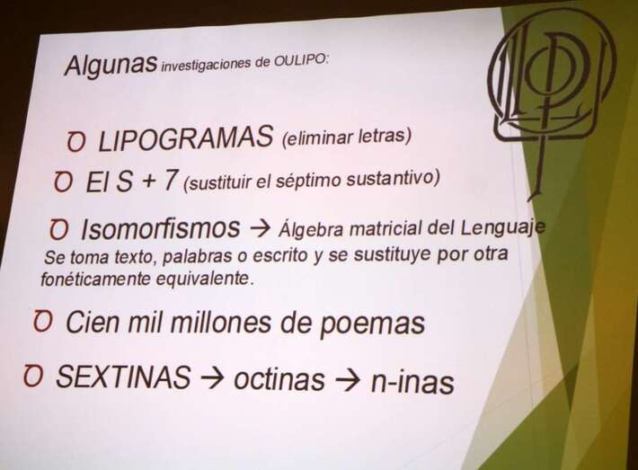 Como resultado de esas investigaciones Oulipianas crearon los Lipogramas, estructuras literarias donde se eliminan letras, por ejemplo, escribir un texto o una obra sin la utilización de una letra escogida. El S+7, sustitución del séptimo sustantivo. Isomorfismos, álgebra matricial del lenguaje. Se toma el texto, palabras o escrito y se sustituye por otra fonéticamente equivalente. Cien mil millones de poemas (donde se selecciona una docena de sonetos con la misma rima y cada verso se corta en una tira, realizándose una serie de versos libres que se van sucediendo al levantar cada tira llegando a un gran número de sonetos). Sextinas, en seis estrofas de seis versos, con una estructura numérica de posición de la palabra final y primera del segundo verso y sucesivas posiciones según se va creando el verso y estrofa. Uno de los poetas escritores Manuel Padorno cuenta con sextinas maravillosas.