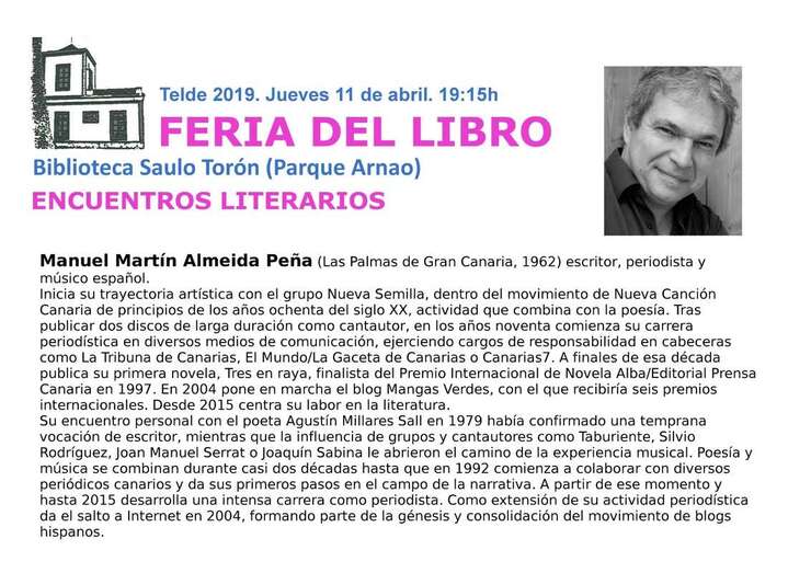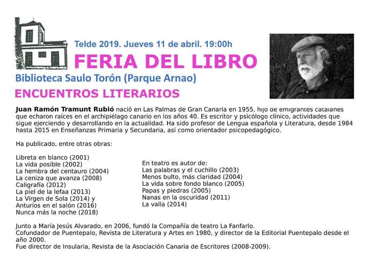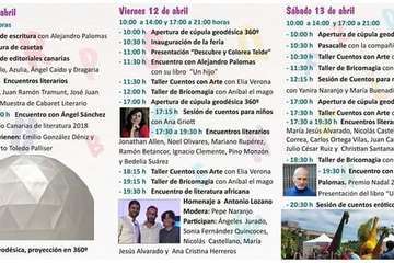 El programa elaborado por la Concejalía de Cultura y el servicio de Bibliotecas Municipales de Gestel comenzará a las 16.00 horas con la segunda sesión del taller de escritura que imparte Alejandro Palomas, premio nacional de Literatura Infantil y Juvenil 2016 y Premio Nadal 2018, la apertura de las casetas y la mesa de las editoriales canarias que participan: ATTK Puente Palo, Azulia, Ángel Caído y Dragaria (17.30 horas).