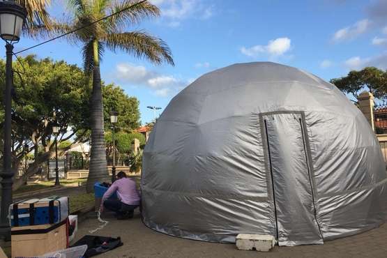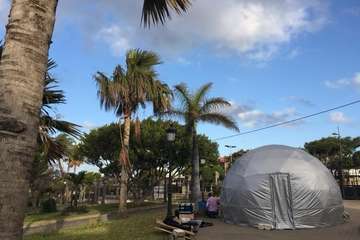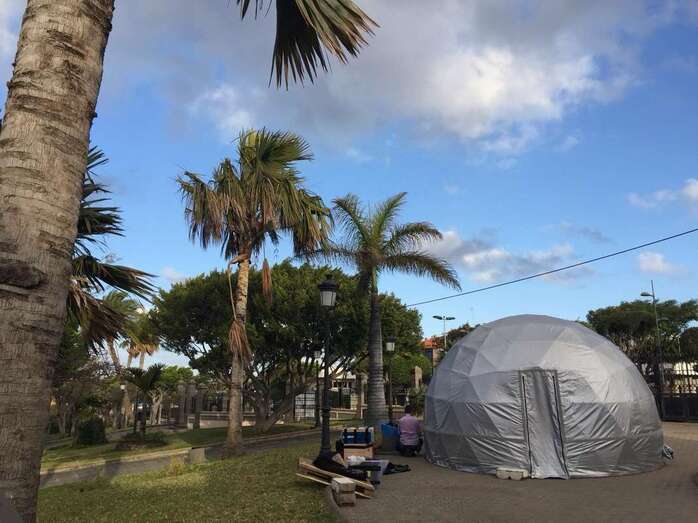 La Feria del Libro de Telde ofrecerá al público que se acerque entre el 11 y el 14 de abril al parque de Arnao la posibilidad de visualizar cortometrajes y documentales bajo una cúpula geodésica que proyecta las imágenes en 360º.