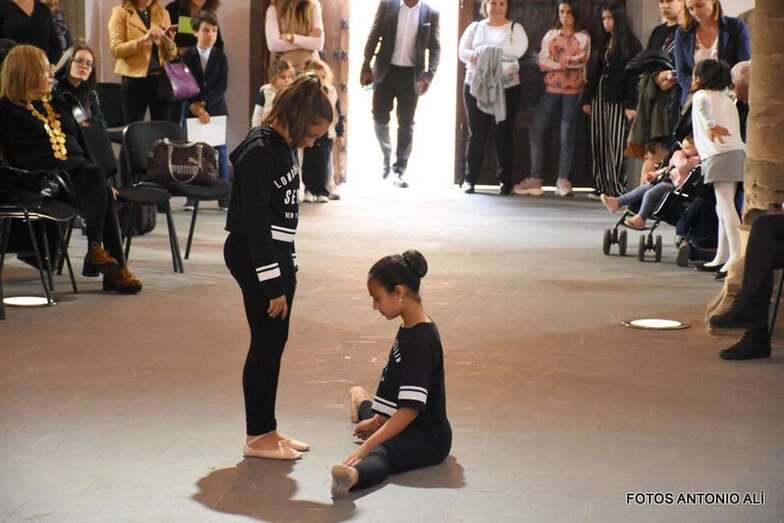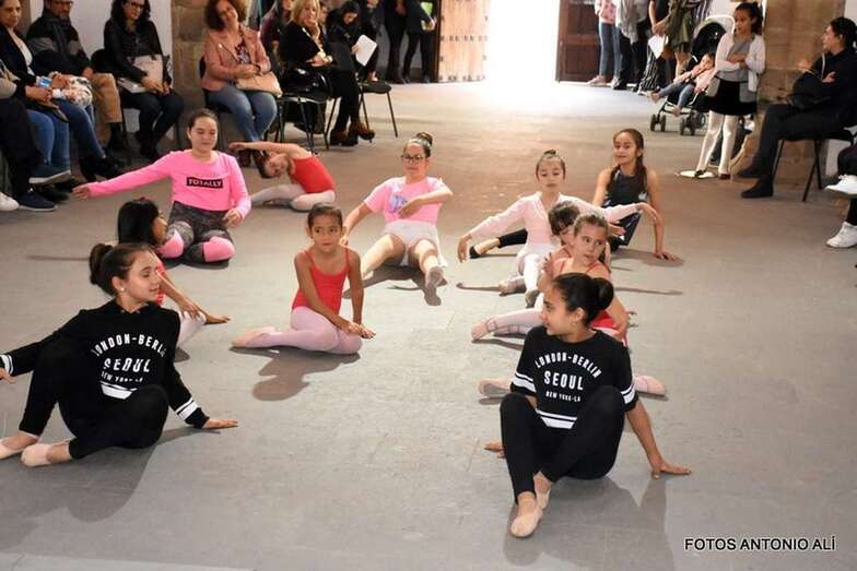 Las alumnas comenzaron con ejercicios de suelo, de calentamiento y elasticidad, para seguir con movimientos básicos de la danza clásica en el centro de la sala magna de la ermita de San Pedro Mártir.
