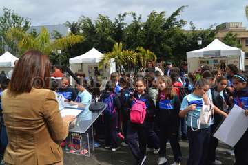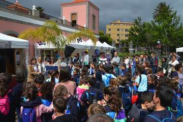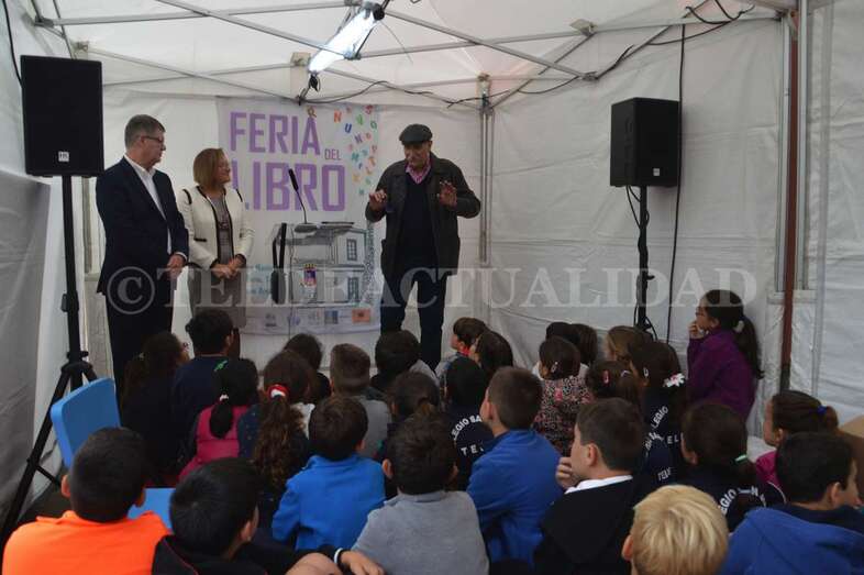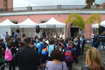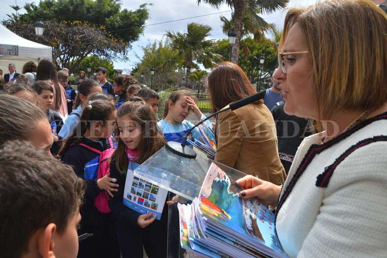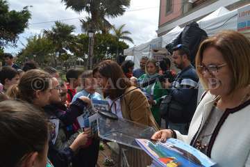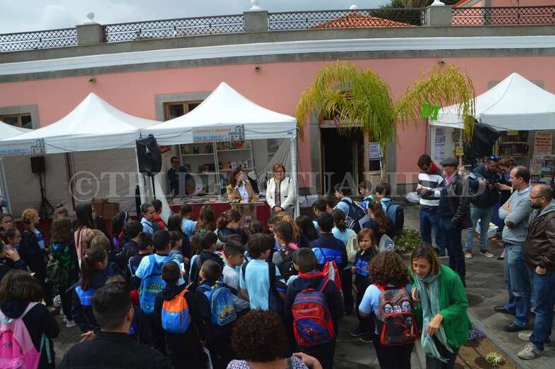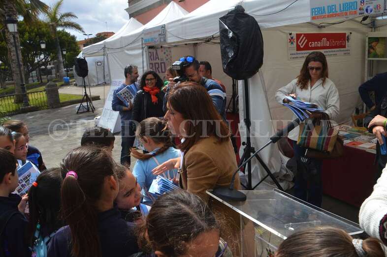 Esta iniciativa coincidió a las 10.30 horas con la inauguración oficial de esta cita con la literatura de manos de la alcaldesa de Telde, Carmen Hernández, y la concejala de Cultura, Marta Hernández, junto a escolares de varios centros educativos del municipio.