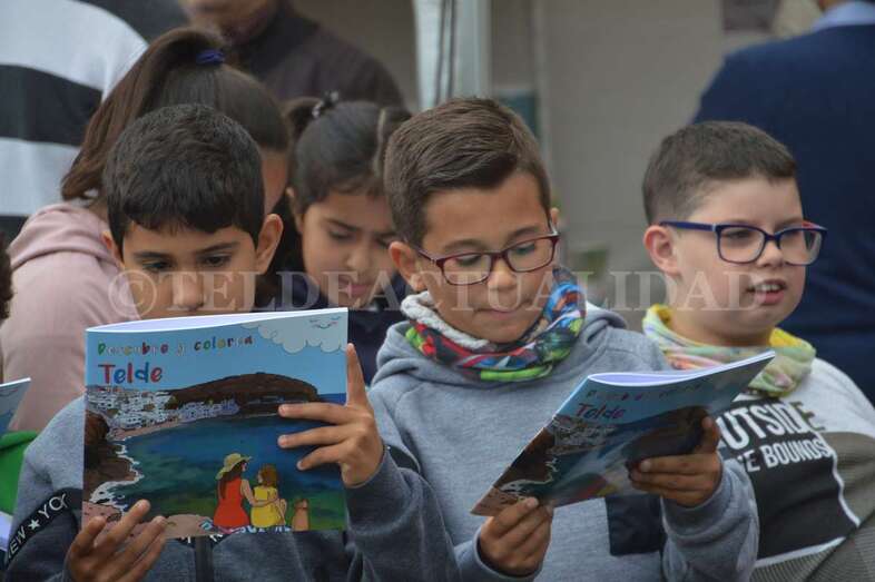 A las 11.00 horas, el cronista oficial de Telde, Antonio María González, presentó y repartió ejemplares de la publicación Descubre y Colorea Telde, una iniciativa con textos suyos e ilustraciones de Carla C. Fernández Díaz la que se pretende acercar a los más pequeños a algunos de los lugares y emblemas históricos de la ciudad.