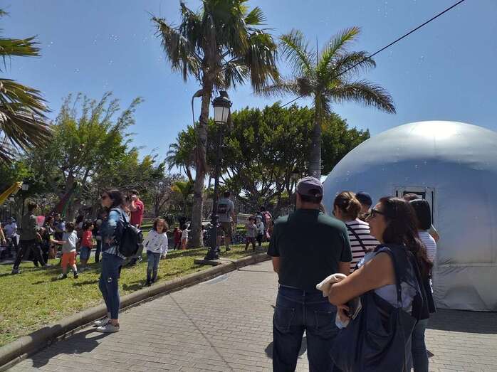 En esta jornada, la muestra organizada por la Concejalía de Cultura y la empresa pública Gestel incluyó de nuevo proyecciones de cortos en la cúpula geodésica, los talleres de Cuentos con Arte y Bricomagia, y hubo sesiones de Cuentos y cantos para bebés , a las 10.30 y las 11.30 horas, y un nuevo pasacalles que animó a las decenas de niños que se dieron cita en el parque urbano de Arnao, epicentro de la feria.