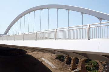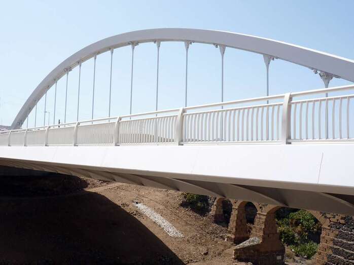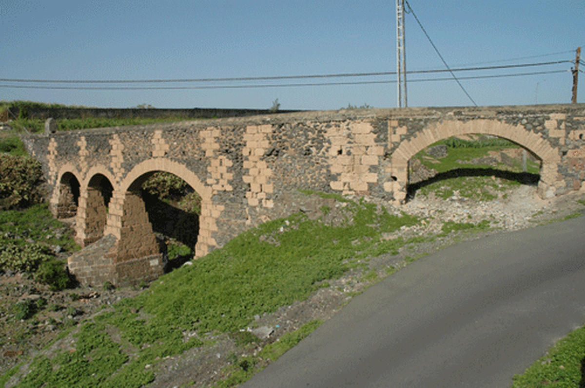 De finales de esa misma centuria y del ingenio del mismo autor procede otro de los que posiblemente se encuentren entre los más populares, por hallarse en una zona de mucho tránsito viario. Es el llamado acueducto de Los Ríos, porque salva el tramo del barranco Real así conocido. También es de los más grandes, con cuatro arcos rebajados con dovelas, una joya que, según consta en su ficha etnográfica de la Fedac, está realizada en piedra de cantería de toba amarilla y mortero de cal y arena. González Padrón aún recuerda que predicó en el desierto cuando le plantaron a dos pasos un viaducto moderno, el de Las Longueras, que apagó su presencia en el paisaje.