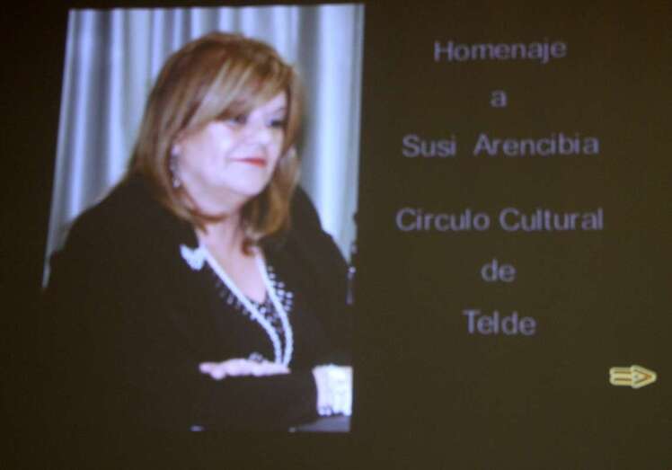 Acto muy emotivo en la que regresaron sus incondicionales y otros ausentes mostrando sus saludos y poemas dedicados a la persona que fue Susi Arencibia, que ante un marco e imagen que la hizo presente, Inma Betancor y Julio Pérez Tejera, artífices y conductores de este homenaje, excusando la ausencia del presidente del Círculo Cultural de Telde, Máximo Riol, por compromisos de agenda y presencia en otro acto cultural en Moya, abrieron el memorial con un excelente trabajo audiovisual, video elaborado por Ildefonso Rodríguez Ramírez y Julio Pérez Tejera, en la que se recorrieron los caminos gráficos de la presencia de la poeta valedora de estas Veladas, ante numerosas ocasiones que cada imagen testimoniaba los caminos andados por las rutas literarias y la compañía de amigos y amigas que, de su mano y ánimos de cumplir el máximo y más íntimo deseo de su afición literaria, llenaron de momentos y tardes inolvidables en estos recintos sus Veladas Poéticas.