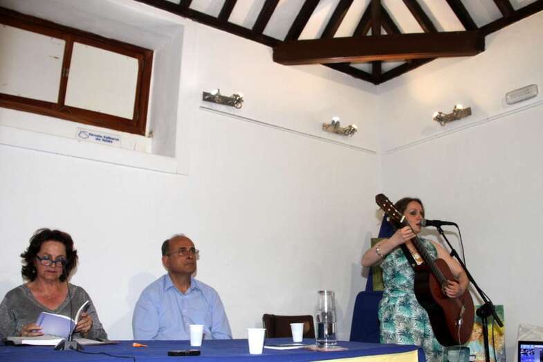 Una de las intervenciones musicales durante esta tarde noche de recuerdos fue la magnífica actuación a lo largo del recitado de la cantautora Carmen Rosa Marrero, una de las personas que más contribuyeron a animar musicalmente a lo largo de estos años que con su guitarra y su voz como solista, o grabación musical ofreció temas de diversos y conocidos estilos con una sensible superación de formas, ritmos y capacidades interpretativos dignos de mencionar. Enhorabuena.
