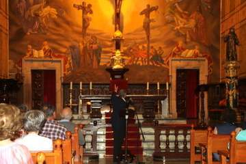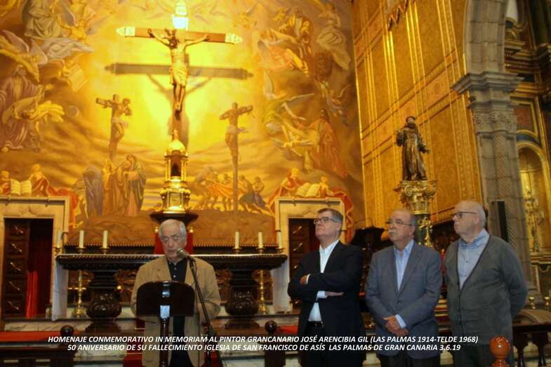 Con motivo de conmemorarse el 50 Aniversario del fallecimiento del pintor grancanario José Arencibia Gil, el lunes 3 de junio tuvo lugar en la Iglesia de San Francisco de Asís de Las Palmas de Gran Canaria un brillante acto dedicado a la memoria del versátil artista afincado en Telde desde su niñez. Don José Arencibia nació en 1914 en Las Palmas de Gran Canaria, habiéndose trasladado su familia a la ciudad de Telde, donde desarrolla gran parte de su actividad artística y docente, con una importante obra de carácter muralista en varios templos de Gran Canaria, bellísimas obras de arte sacro que trabaja en la técnica de óleos sobre lienzo adosados a la pared, destacando por su grandiosidad, entre otras, el gran mural del Presbiterio del bello templo de San Francisco de Asís donde se conmemora este aniversario.