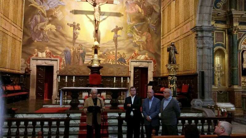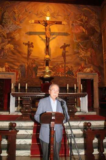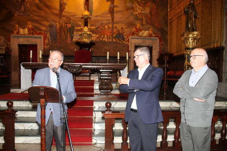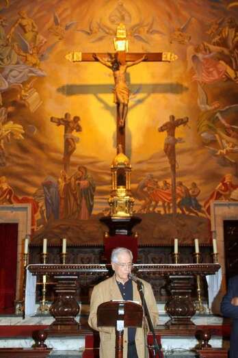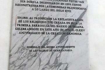 Un memorial ante el altar de la iglesia de San Francisco de Asís, primera parroquia desde 1821 que fuera creada en el barrio capitalino de Triana, acto que abre el párroco don José Luis Guerra agradeciendo la asistencia del público y la elección de este templo para honrar la memoria del pintor Arencibia Gil, ante su gran obra pictórica, así como a la colaboración y representación de las entidades intervinientes. Don Manuel Sánchez, presidente de la Asociación de Vecinos Terrero-Guiniguada (Triana). El Cronista Oficial de Artenara, José Antonio Luján Henríquez, secretario de la Junta de Cronistas Oficiales de Canarias, y vice presidente de la Asociación de Vecinos Terrero-Guiniguada. Cronista Oficial de la ciudad de Telde, Antonio María González Padrón, ex director conservador de la Casa Museo León y Castillo de Telde.