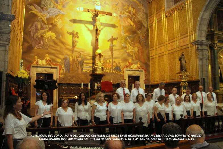 Un magnífico escenario que ante el presbiterio de la Iglesia de San Francisco tanto las intervenciones de las personalidades mencionadas como la actuación del coro Amati lograron traer por la biografía y la obra del pintor de Telde, José Arencibia Gil, el testimonio artístico de la creatividad, protagonista visual y emotivo del mensaje humano y sacro de la representación ante el gran mural del Monte Calvario, y el lienzo sobre el arco toral una magnífica exposición para acercarnos en la reflexión personal y grandeza de la personalidad de José Arencibia, quien hoy nos ocupa retomar su obra, en este acto que conmemora el 50 Aniversario de su último viaje, dejándonos la estela intelectual, artística, cultural, de sus trabajos y proyectos para engrandecer Telde, Gran Canaria y Canarias, un gran patrimonio del que disfrutamos y siempre recordamos. Honor y gloria a la persona y artista que fue don José Arencibia Gil. In Memoriam. Muchas gracias.