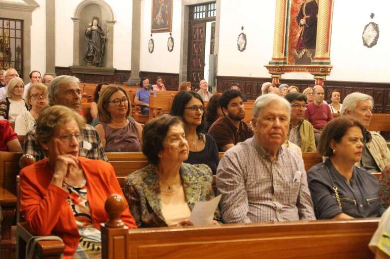D. José Luis Guerra expone en su intervención: “El honor de colaborar en este acto con la Asociación vecinal del barrio en un homenaje de evocación y reconocimiento a don José Arencibia Gil cuya huella artística y personal tanto marco la última restauración de la iglesia de San Francisco entre los años 1954 y 1961. Fue un trabajo arduo y largo que fue posible iniciar y concluir gracias a la iniciativa de los párrocos don José Naranjo, en el primer año, y don Miguel Ojeda, el resto. Junto a ellos no se puede olvidar la colaboración de una feligresía entusiasmada, comprometida y colaboradora y la gestión de una junta parroquial eficaz. Este ha sido un edificio que ha pasado por muchos avatares históricos y en algunos momentos hubo que reedificarlo sobre las ruinas anteriores. Como sucedió con el incendio provocado por los piratas holandeses.
