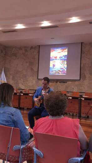 El acto, que estuvo presentado por el concejal de Cultura de la Villa, Francis González, registró un aforo completo y arrancó con la actuación del timplista grancanario Germán López, quien interpretó dos composiciones propias inspiradas en el paisaje de la playa de Arinaga.