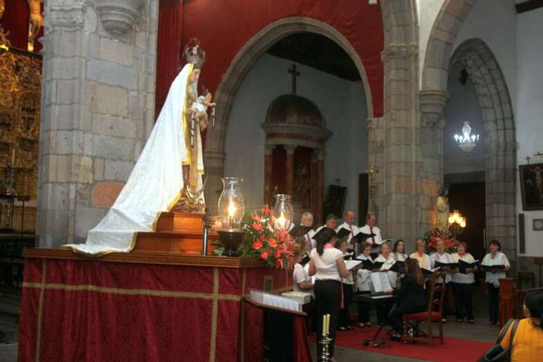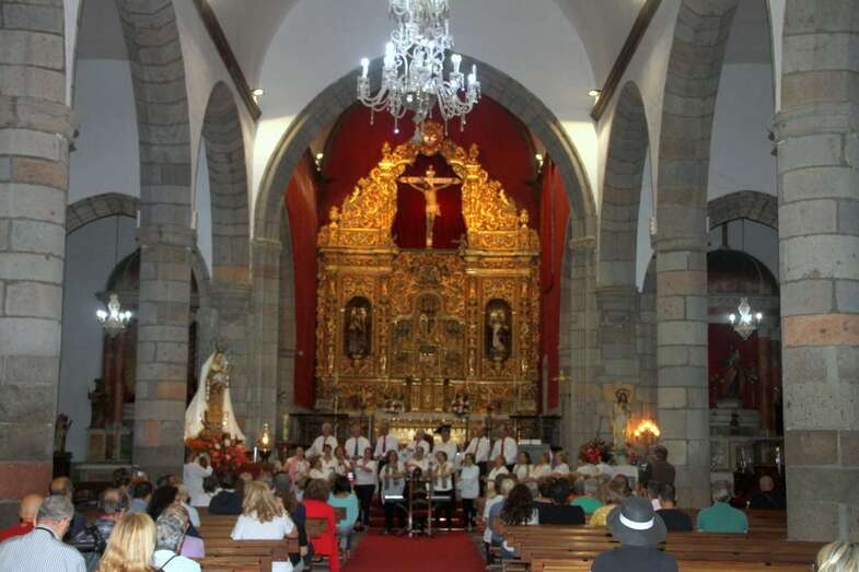 bellísimo repertorio de 17 temas brillantemente interpretados y un bis, de la preciosa composición Esta tierra, que Amati dedicó y agradeció en la voz de su directora Narmis Hernández al respetable público que a lo largo de la nave central disfrutaron de este concierto ante el precioso escenario del Altar Mayor gótico flamenco de la Basílica Menor de San Juan Bautista, presbiterio, esta vez presidido por la imagen de la Virgen del Carmen, muy venerada en este municipio de Telde, patrona del mundo marinero del que nuestra ciudad dedica preciosos actos religiosos, procesiones, embarques y navegación de la talla por nuestro litoral, celebrados desde el pasado martes 16 de julio día dedicado a la Virgen marinera, y que Amati dedica en su concierto de verano con la Salve Marinera.