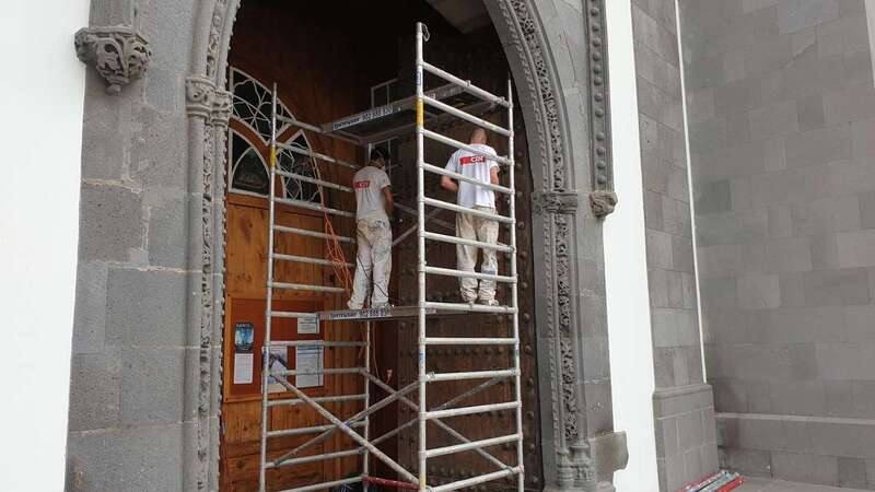 Telde.- La Parroquia de San Juan ha emprendido unas obras de remozamiento exterior de puertas, ventanas y paramentos de la Basílica de Telde, edificio religioso emblemático del conjunto histórico de la ciudad con 500 años de construcción.