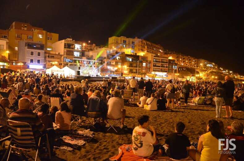 El espectáculo humorístico 'Sonrisas al sol' y el concierto de la banda grancanaria triunfan en la playa teldense