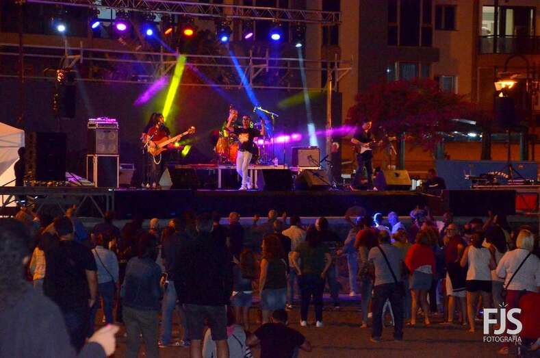 Pasadas las 23.30 horas, los componentes de Tio Matt relevaron a los humoristas en el escenario de la playa de Melenara para dar un concierto musical.