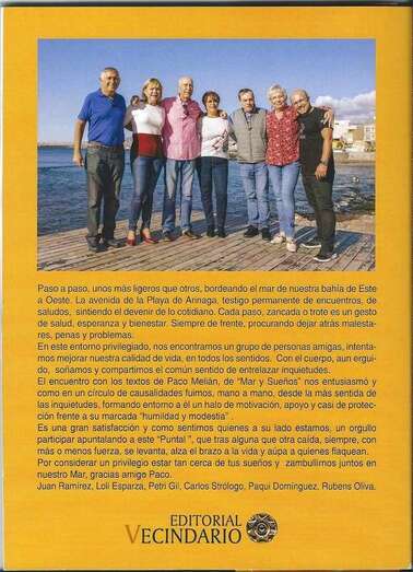 Presenta a Chani Ojeda como representante de la ONG, encargada de la distribución y venta de la obra con el compromiso logrado para su fin, Igualmente, Pimpa Melián, hermana de Paco ha sido y estado en cada uno de los momentos para dar a conocer el poemario y distribuirlo entre sus contactos y otros círculos, logrando destacar sus numerosas ventas. La importancia de la labor organizativa del equipo ha sido de gran relevancia como la creación de la portada del libro a cargo del artista y colaborador Carlos Strólogo. La logística y coordinación a cargo Paqui Domínguez y Petri Gil. En la dedicatoria el autor escribe un memorial a sus hijos Óscar y Minerva, y a su hija Ester que acompaña en este acto a su padre.