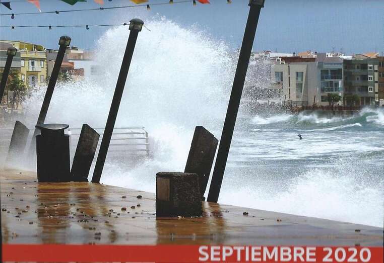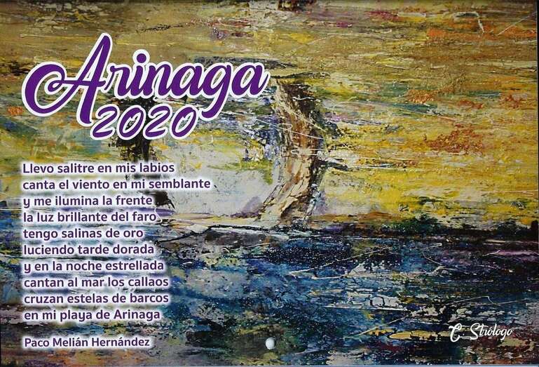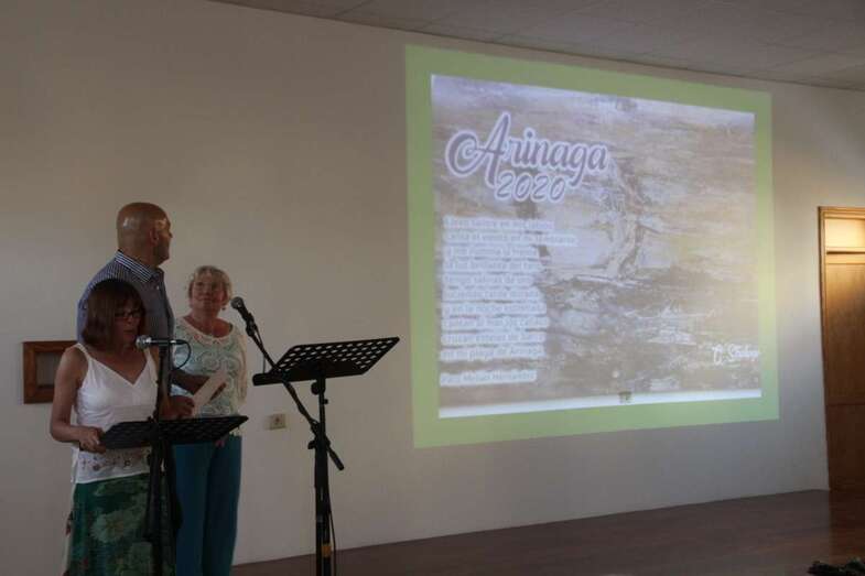 Se procede a la presentación del calendario Arinaga 2020 (ONGD Canarias con Mozambique), a cargo de Chano Sánchez, Olivia Ramírez y Paqui Domínguez, cuya presentación mes a mes se proyecta con las imágenes que en su elaboración han incluido como trabajo y fruto de la colaboración gráfica de los excelentes fotógrafos que han sabido captar la naturaleza y diversidad litoral de Arinaga que titula dicho calendario con los versos del poema de Paco Melián: “Llevo salitre en mis labios/ canta el viento en mi semblante/ y me ilumina la frente/ la luz brillante del faro/ tengo salinas de oro/ luciendo tarde dorada/ y en la noche estrellada/ cantan al mar los callaos/ cruzan estelas de barcos/ en mi playa de Arinaga/”.