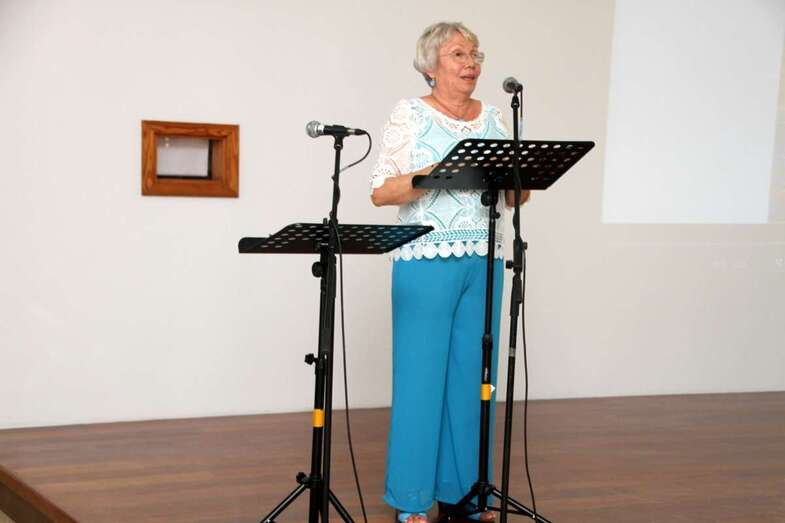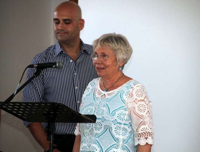 Toma la palabra como representante y colaboradora de la ONGD Canarias con Mozambique, doña Paqui Domínguez, a modo de maestra de ceremonia y animadora, expresa el agradecimiento al sentirse entre personas solidarias y en la asistencia a este acto, agradece esta primera intervención de Chano, Yasmany y Olivia, por acompañar al poeta Francisco Melián por el humano detalle de entregar la recaudación por la venta del libro a dicha organización que surge de la idea en una mañana de paseo por las orillas de Arinaga, y animar a Paco en la autoría y reconocimiento de su poemario e incluir fotografías de este núcleo costero de Arinaga, aceptando la colaboración de trabajos fotográficos de un equipo formado por Rubén Oliva, Juan Ramírez, Loli Esparza y Raquel Montero, y así comenzó esta andadura y proyecto como expresa Paqui Domínguez.