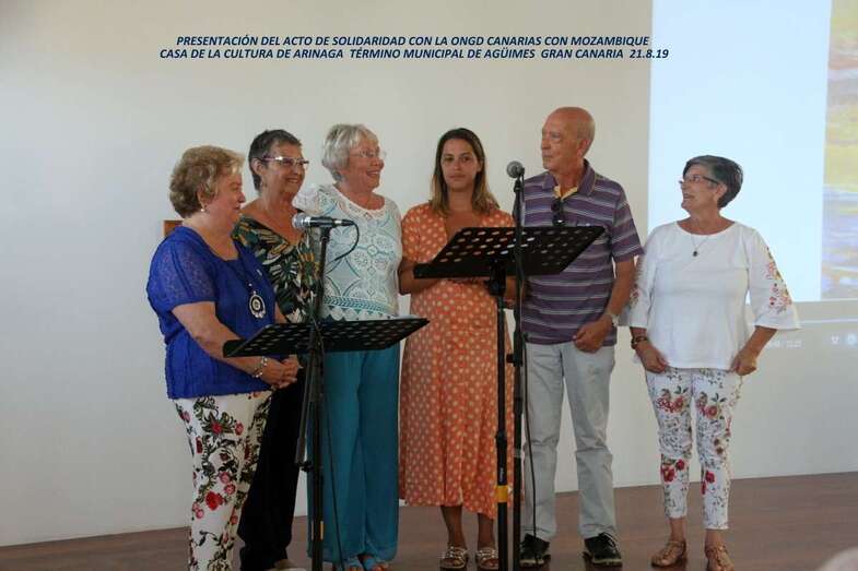 Una monográfica exposición en paneles con numerosas fotografías, noticias, posicionamiento geográfico, histórico y político de Mozambique, destaca la amplia e informativa acción de los proyectos conseguidos por la ONGD Canarias con Mozambique, dando a conocer el resultado de los trabajos, colaboraciones, que a lo largo de sus veinte años de continuado esfuerzo por ayudar a países que necesitan la solidaridad y el apoyo humano de los que hemos pasado a formar parte de ese primer mundo y, en este caso, volver la mirada sobre Mozambique desde una actitud solidaria, aporte y esperanza para los menos favorecidos, que hoy en forma de cultura literaria, el verso, la palabra, y la acción humana, se han dado la mano para llevar una nueva carga material e ilusionante para elevar el espíritu de los que desde Agüimes, Arinaga y por la excelente colaboración de todos los equipos de trabajo participantes, Mozambique y su pueblo superen las diferencias y necesidades que les impone su situación.