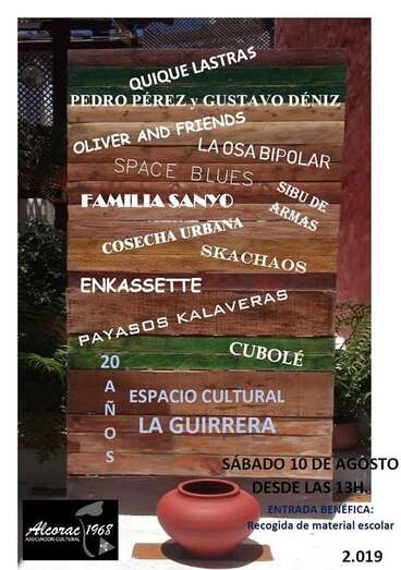La jornada cultural comenzó a las 13.00 horas del sábado 10 de agosto con la actuación del cómico Quique Lastra. A continuación subieron al escenario diferentes artistas con su forma de ver la música. Intervinieron los cantautores Pedro Pérez y Gustavo Déniz y Oliver and Friends y las bandas de música La Osa Bipolar, Space Blues, Familia Sanyo, Cosecha Urbana, Skachaos, Enkassette y Payasos Kalaveras. Estuvieron presentes igualmente los ritmos cubanos con Cubolé y se expusieron las obras pictóricas de Sibu de Armas y de Jorge Santana.
