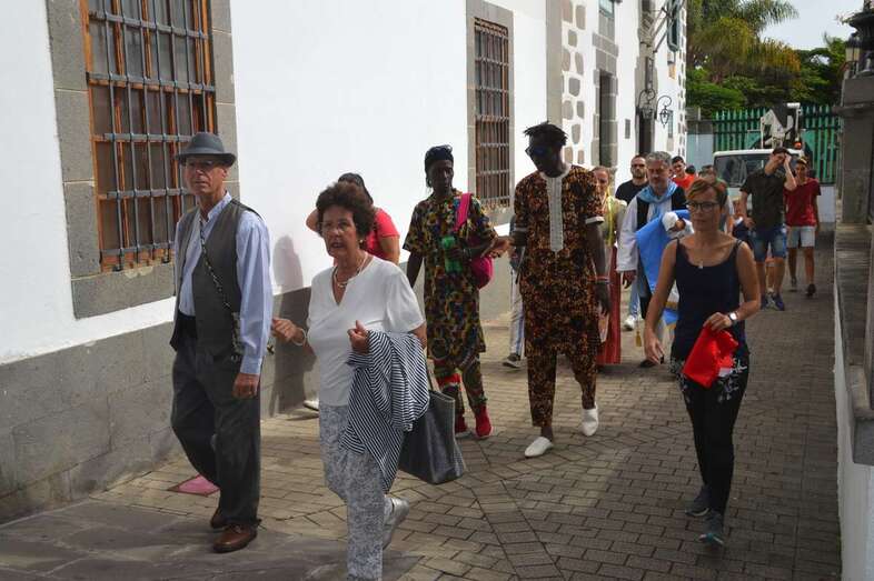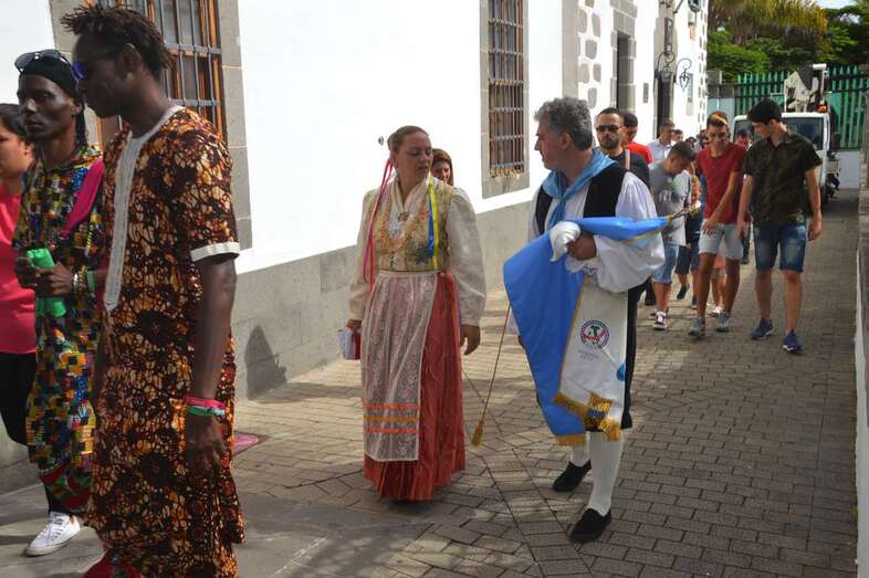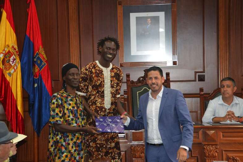 Italianos y senegaleses posaron en el pintoresco Rincón Pláido Fleitas para una foto de familia junto a concejales de prácticamente todos los grupos políticos y a miembros de las agrupaciones anfitrionas, El Salitre del Faycán y Cendro, ambas de Telde. Tras la toma de la imagen protocolaria, la comitiva se dirigió al Salón de Plenos de las Casas Consistoriales, donde tuvo lugar un sencillo acto de bienvenida con intercambio de regalos incluido.