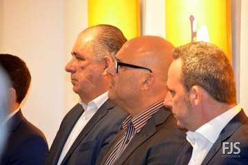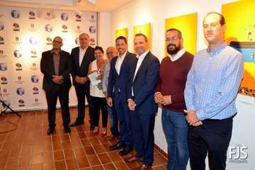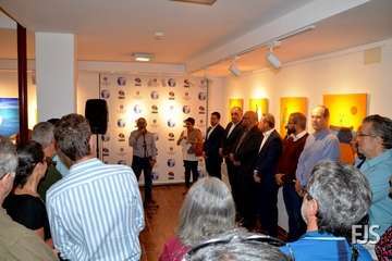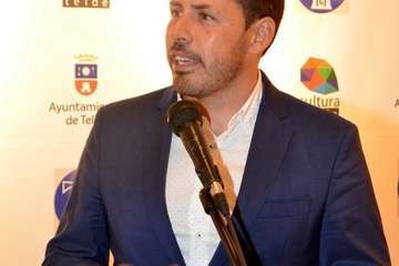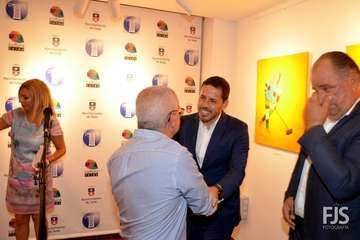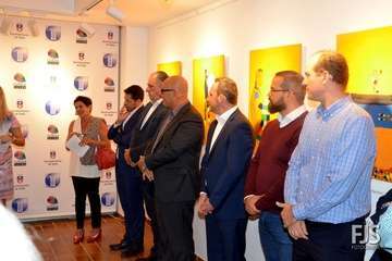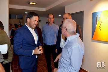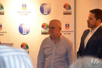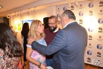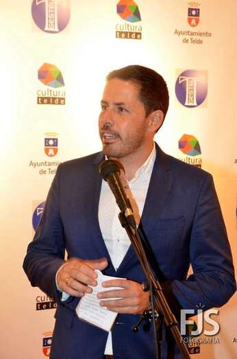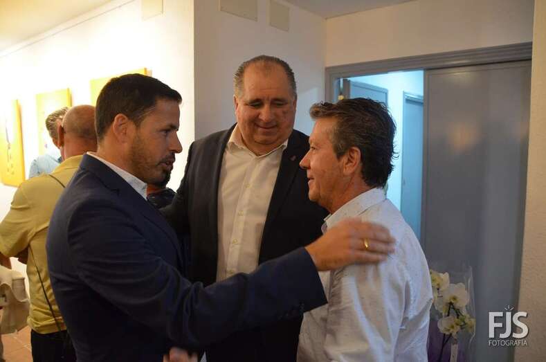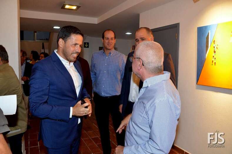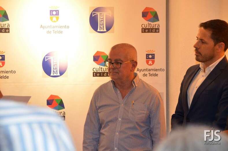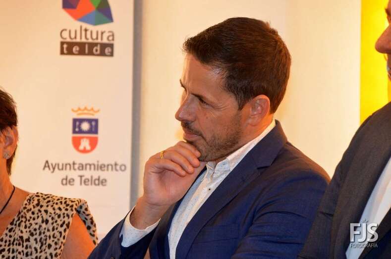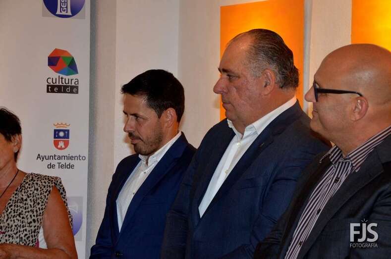 El alcalde de Telde, Héctor Suárez, y el titular de Cultura, Juan Martel, acompañaron al artista durante la inauguración de la exposición.
