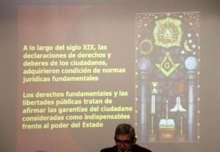 Cierra esta primera jornada el doctor Jesús Soriano, director del seminario y Soberano Gran Comendador del Supremo Consejo del Grado 33 y último del Rito Escocés Antiguo y Aceptado para España. Imparte la ponencia La Masonería Filosófica y los derechos y libertades del ciudadano".