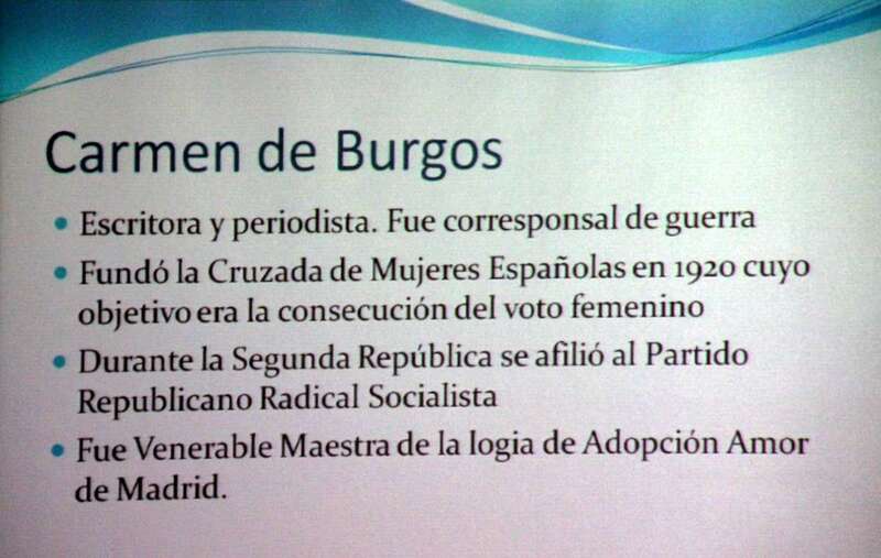 Intervienen la Dra. Natividad Ortiz Albear, profesora de Historia de la Universidad de Salamanca que imparte la ponencia “Hijas de la Luz: las mujeres en la Masonería española”, autora de obras como Las mujeres en la masonería, Premio Victoria Kent de la Universidad de Málaga en 2005. En 2017 publica “Masonas y Republicanas”, que aborda la historia de cinco mujeres comprometidas con los valores republicanos y la masonería, mencionadas en esta ponencia: Carmen de Burgos, Clara Campoamor, Consuelo Berges, Hildegart Rodríguez y Aurora Bertrana. Si para los hombres fue difícil este camino para las mujeres lo fue peor.