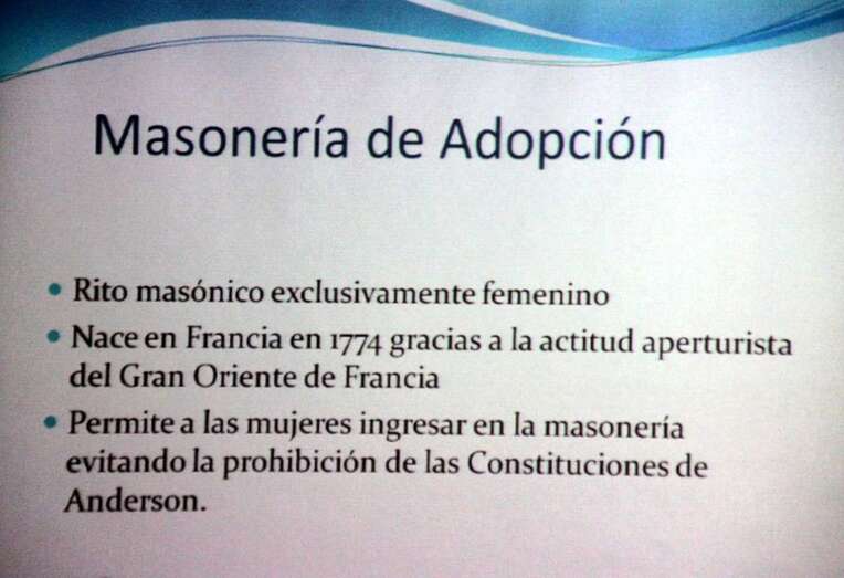 Las mujeres no podían ingresar en la Masonería por la consideración de no ser personas libres y dependían aún de la tutela de un varón. A pesar de todo hubo mujeres en la masonería que demuestran documentos. Para su ingreso se crean lo que se llamó la Masonería de Adopción, rito masónico exclusivamente femenino que nace en Francia en 1774, gracias a la actitud aperturista del Gran Oriente de Francia. Se distingue una etapa aristocrática en logias elitistas. En 1861 se reforma la masonería y hay una mayor implicación social caracterizada por el anticlericalismo y florecen las logias femeninas o de Adopción.