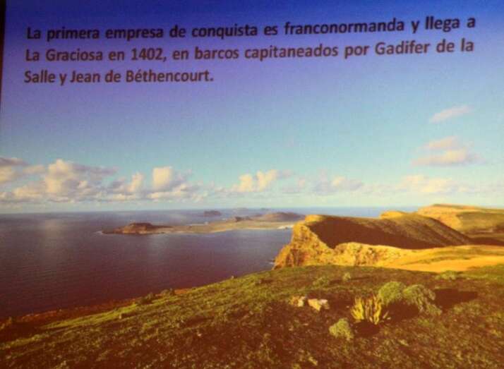 Para centrarnos, cuando expediciones europeas empezaron a llegar a Canarias, siete de las ocho Islas Canarias, estaban habitadas por seis tribus norteafricanas. Hace 600 años en Canarias vivía una tribu llamada Amazigh o Canarii, démoslo en guanche con todas la connotaciones y dudas razonables sobre el nombre de las tribus, Benahoritas o Awara, y Bimbache para El Hierro. La primera empresa conquistadora fiable organizada llega a La Graciosa en 1402, y estaban al mando de la corona de Castilla unas naves normandas, comandadas por Gadifer de La Salle y Jean de Béthencourt. Poco tiempo después de esa fecha, posiblemente en verano, desembarcan en la playa de Los Pozos al sur de Lanzarote, donde existe un barranco con bastante agua, tanto es así que en unos barrancos paralelos al de Los Pozos, que no está habitado, hay un Hotel que desde hace más de veinte años se nutre del agua del subsuelo, llamando la atención que una isla tan árida y seca, carente de agua en el subsuelo como Lanzarote existan cúmulos o lentejas de agua en determinadas zonas. Posiblemente esas zonas fueran conocidas por la población aborigen.