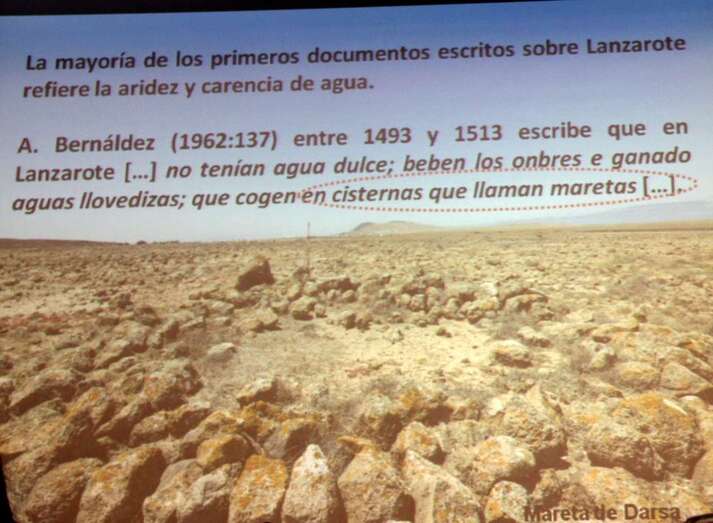 Leonardo Torriani en calidad de ingeniero, también expresa en 1592 que: No tienen agua de beber buena, más de la que llueve, que recogen en pequeñas charcas que llaman maretas, ésta es excelente, sana, limpia y muy ligera por estar descubierta y agitada por los vientos. En Famara, frente a La Graciosa, en Rubicón y en Haría hay algunos pozos con agua gruesa, salobre, de mal sabor, la cual, en tiempo de esterilidad (cuando no hay lluvias), dan al ganado.