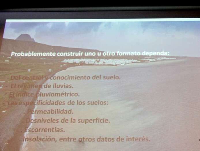 Probablemente construir uno u otro formato dependa del control y conocimiento del suelo, del régimen de lluvias, del índice pluviométrico y de las especificidades de los suelos, teniendo en cuenta su permeabilidad, desniveles de la superficie, escorrentías, insolación, entre otros datos de interés, todos estos datos son para entender el nivel de conocimiento que tuvo la población aborigen con este recurso. El objetivo es recoger y almacenar el mayor volumen del agua caída, porque tampoco hay más. Se nombra desde el principio turnos para recoger las aguas de un remanente o resumen de agua para su recogida. Hay una cierta especialización de los suelos, hemos hablado de una, los aljibes como los tablones en Haría, al norte del Mirador del Río.