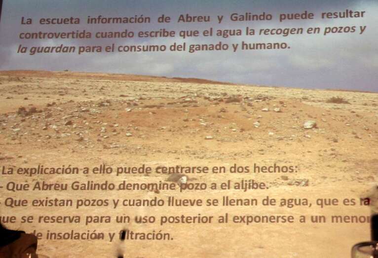 La primera crónica de la conquista 1402, dice que hay una gran cantidad de aljibes y luego los pozos destinados a acumular el agua de lluvia. Lo cierto es que además de esa zona del Mirador en la ermita de Las Nieves se ven una cantidad importante. El posible error de Abreu es que denomine pozo al aljibe, o bien que existan pozos que cuando llueve se llenan para que el agua esté sometida a un menor grado de insolación y de filtración. Los aljibes han de ser obras de ingeniería, el depósito ha de tener un equilibrio entre el agua que entra, la que sale cuando el aljibe está lleno y un sistema de ventilación para que el agua no se pudra.