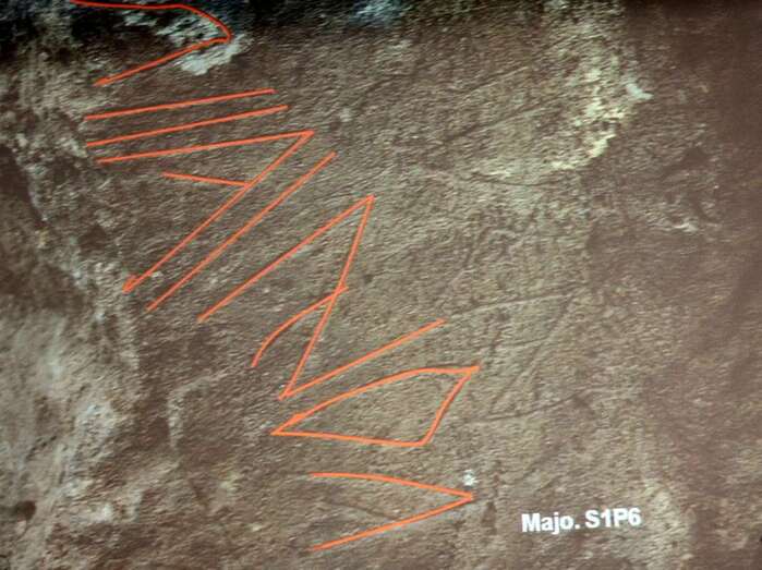 Se hicieron dos sondeos en dos maretas distintas con resultados diferentes. La mareta esta hecha en un hoyo sellando las paredes con lajas verticales y las grietas selladas por pequeñas cuñas de piedra, en las grietas más grandes donde se une el piso con la pared que es cóncavo aplican sucesivas capas de barro o de tegue, que es un material de barro blanco que se recoge en la zona de Las Nieves y es muy cotizado para impermeabilizar. En Zonzama, por ejemplo, que es un asentamiento de un complejo arqueológico donde los recintos habitacionales que están hechos con casa hondas, hay multitud de capas de tegue que una y otra vez fueron aplicadas. Posiblemente con la intención de conservar, pero también por cuestiones higiénicas, que es como la cal que se ponen los aljibes para depurar el agua. Estos desniveles a veces crean estos charcos y son importantes porque además se escribe en ellos. Torriani diferencia maretas, que sería el término de laguna, pero el habla de mareta, y pozo. Y habla con esas características, una es más saludable y otra es gruesa, salobre y mal sabor y que se distingue del agua de lluvia.