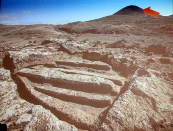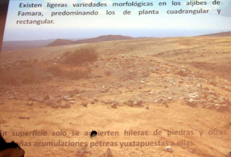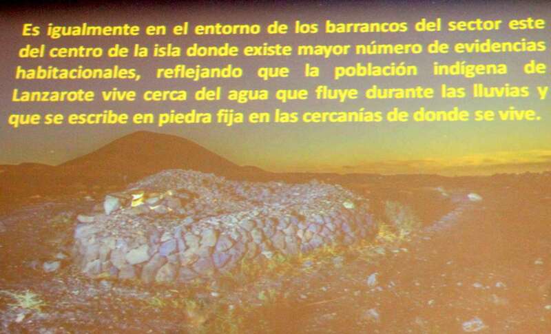 Un tercio de Lanzarote está sepultado por las erupciones volcánicas de Timanfaya, Tao y Tinguatón. Un estudio realizado por el compañero José de León, con prospecciones, referencias orales y estudios documentales, ha conseguido localizar las once aldeas que sepultaron las erupciones, catástrofe natural, ha localizado en esta zona que eran fértiles valles. Por ejemplo, la geria, rodeado de montañas, se observan en las imágenes el cortijo y yacimiento aborigen de la geria, que tiene cerca de 70 topónimos, en tanto que numerosas maretas como las descritas. Cerca de la ermita que fue sepultada por la arena y se recuperó más tarde hay material aborigen y se cita para este lugar los beberos. Más al sur hacia las playas del Papagayo los pozos del Rubicón, es posible que alguno de ellos se remita al mundo aborigen. Cuando los conquistadores asientan en Rubicón la población aborigen vive en tornos inmediatos a este, y en lo que llaman almogarén. Este año se realizo la primera campaña en el Barranco de Los Pozos, se habal de siete pozos, pero son cuatro y en el estudio realizado hay dos zonas donde se ha detectado más, en la playa y barranca arriba, por el Barranco del Pozo de las Cabras.