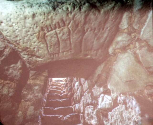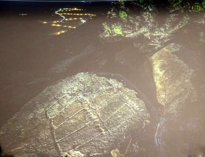 Las siluetas de pies además de un recurso o instrumento que tiene la población aborigen para sacralizar el espacio, el 80% de ellos está orientado al solsticio de invierno, cuando empiezan las lluvias en esta zona. Por eso se ha interpretado la montaña de Tindaya como un centro ritual potenciador de las lluvias. Además, en el Pozo de La Cruz o de los Escalones, en una piedra del frontal hay una representación antropomorfa que ha sido clasificada como la representación de la diosa de la fecundidad libia, pero con la posibilidad de que también fuera una marca de cantero como en muchas catedrales o en el norte de África hay marcas de canteros sobre los sillares de piedra. Este año nos dimos cuenta que la puesta de sol se refleja y acaba en el círculo de esta figura. Hay que continuar investigando estos fenómenos. Sobre las piedras existen canales o procesos labrados de acanaladuras para mantener y dar curso a las aguas. Hay un proceso de creencias sobre estas montañas y basadas en la magia simpática, que para atraer la lluvia se facilitan estas formas sagradas de canales para atraer la aguas. En la montaña de la Mina, yendo hacia San Bartolomé, en la cima hay 99 canales en la parte sureste. Formas laberínticas de las cazoletas y canalillos. Siempre la importancia de atraer la lluvia antes que nada y las recogidas de las aguas con su sacralización, creándose en torno al agua cosmogonías, en ceremonias de llamadas a las lluvias y el agua.