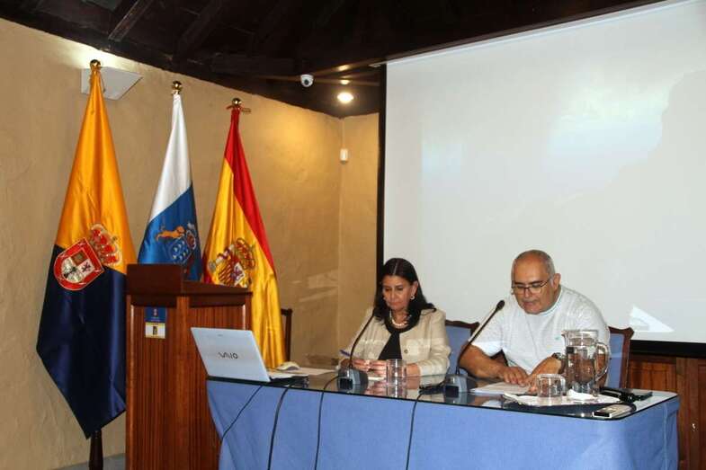 Presentado el acto por Juan Ismael Santana Ramírez, archivero y técnico de museos de la Casa Museo León y Castillo, expresa la bienvenida a la ponente y al público asistente: “La doctora María Antonia Perera Betancor, doctora en Prehistoria, Arqueóloga, ha centrado sus investigaciones desde hace muchos años en la poblaciones indígenas de Canarias y del norte de África, y se ha especializado en el estudio de las manifestaciones rupestres, en la religión de los aborígenes, en la arqueoastronomía o la arqueología del paisaje; de toda su labor investigadora cuenta en su haber con multitud de trabajos y revistas especializadas con participación en congresos nacionales e internacionales. Ha sido durante veinte años jefa del Servicio de Patrimonio Histórico del Cabildo de Lanzarote con una extensa trayectoria en temas de conservación del Patrimonio, y paralelamente ha estado vinculada a los movimientos sociales feministas, anti militaristas, ecologistas y ha destacado en los últimos años por la conservación de la Montaña Sagrada de Tindaya, en Fuerteventura. Desde julio de 2019 ejerce el cargo de Directora General de Cultura del Gobierno de Canarias. Hoy, como arqueóloga, la felicitamos por este cargo y nos ofrece en estas jornadas la conferencia El agua en la población aborigen de Lanzarote”.