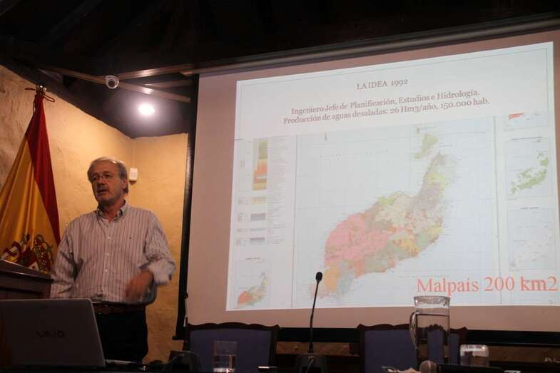 El martes 22 en la ponencia El acuífero de Timanfaya o la bendición de una tragedia, impartida por Carlos Soler Liceras, doctor ingeniero de Caminos, Canales y Puertos. El doctor Soler en su intervención explica la razón del porqué este acuífero ubicado en la isla de Lanzarote es la gran sorpresa, más allá del misterio por razones tanto geológicas, científicas y de la propia naturaleza de las causas que originaron este proceso de origen volcánico sobre un terreno de usos comunes para labrantías que en su día quedó totalmente cubierto por el malpaís originado por las erupciones de Timanfaya en el siglo XVIII (1730-1736).