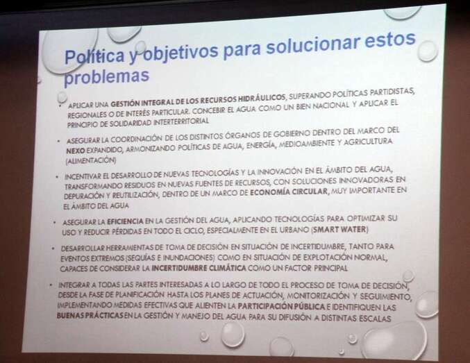 Un auténtico éxito de asistencias de público en el interés por conocer, ampliar y mejorar los conceptos tratados desde diversos ángulos y puntos de vista, que los especialistas en sus previsiones han puesto de relieve con cambio climático incluido y sus consecuencias ya cercanas, se ha convertido en un constante debate e interés por su captación, extracción y aprovechamiento, en dos binomios interrelacionados, agua y energía que han de ir por los mismos caminos como las dos caras de una moneda, para conseguir una mejora en las respuestas tecnológicas, respuestas de gestión, de educación y concienciación.