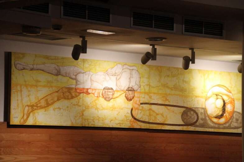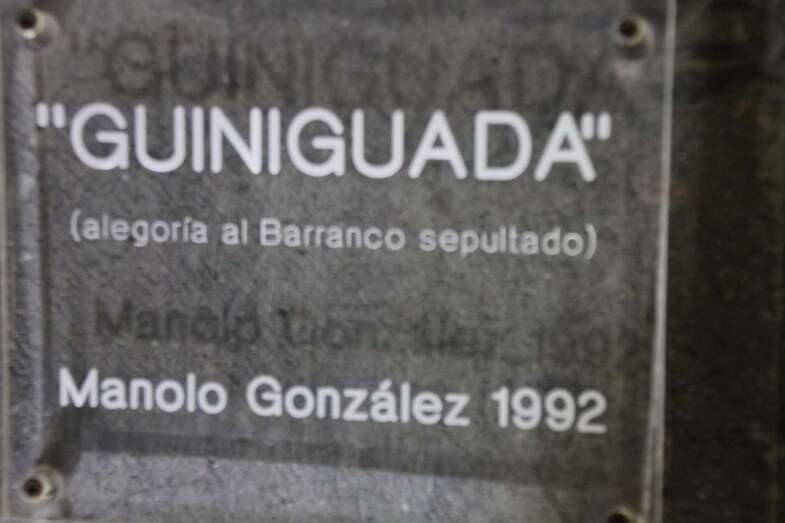 Una admiración y oportunidad el poder escuchar las voces de las diversas agrupaciones corales, teniendo como escenario esta sala de la Fundación Mapfre Guanarteme, en la que se pueden admirar los bellos frisos obra del artista Pepe Dámaso, dedicados al vernáculo deporte de la lucha canaria. A la entrada del edificio del bello edificio de esta emblemática arteria principal urbana como lo es la calle de Alonso Quesada, destacan clásicos edificios que formaron arte del desarrollo urbanístico de principios del siglo XX, en el marco pintoresco de las riberas del Guiniguada, que tantas veces recordamos y plasmado como testimonio en las antiguas postales o fotografías, en este principal núcleo señero de Vegueta-Triana, hoy cubierto por el acceso vial al entro de la isla. Uno de los artistas más reconocidos en la escultura contemporánea de Gran Canaria, Manolo González, autor de numerosas obras, dedica como homenaje a este barranco la escultura que lleva su nombre, Guiniguada, alegoría al barranco sepultado trabajo de 1992, que complementa el jardín que recibe al visitante en el acceso principal del edificio.