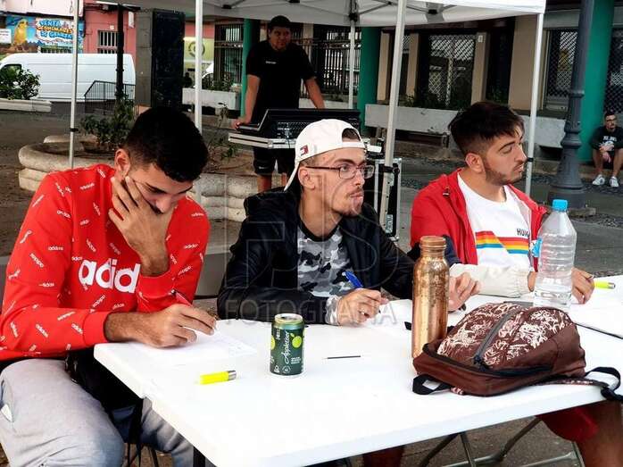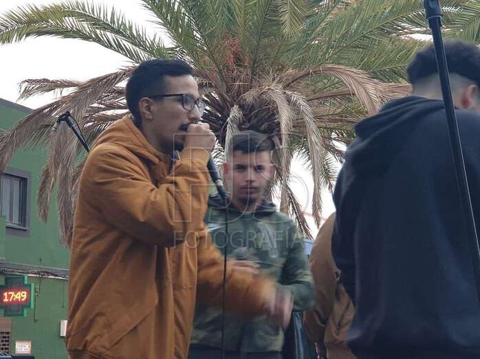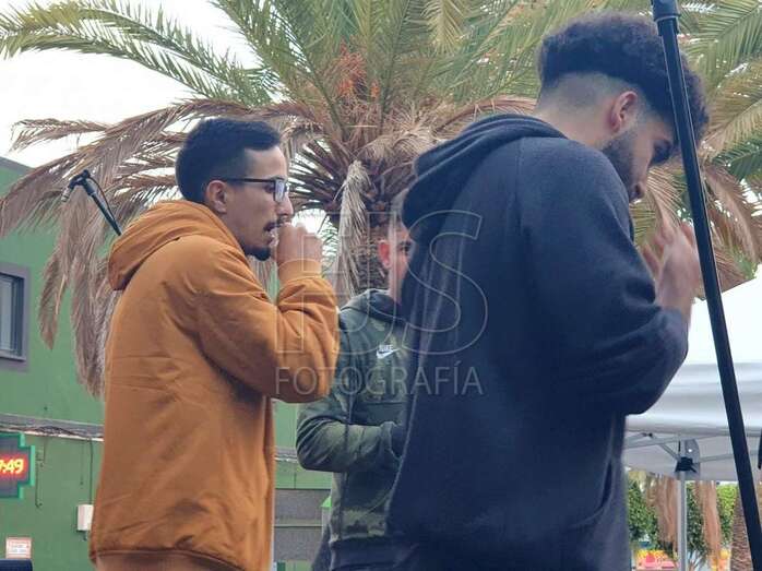 Y como gran novedad, a las 18.00 horas se celebró una batalla de gallos de Telde en la que participarán 20 raperos que intentaron vencer a sus ‘contrincantes’ improvisando letras sobre diferentes bases instrumentales. Este peculiar certamen estuvo presentado por Aniba Faycán y tuvo como miembros del jurado a Beirán, Niñote y Duke.