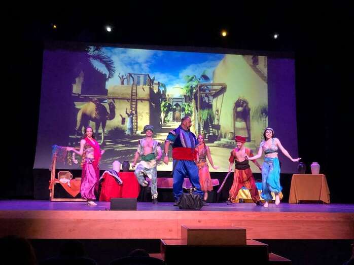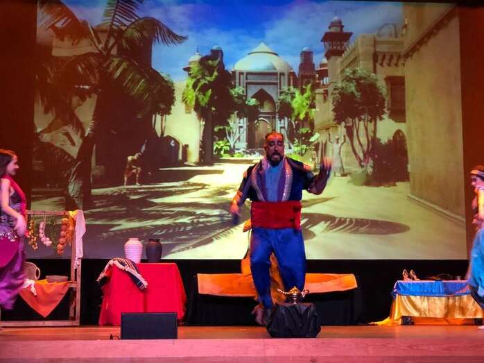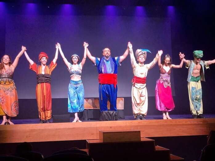 Telde.- La compañía Onbeat llenó este mediodía el Teatro de Telde con la representación de la obra musical La lámpara maravillosa. Tributo Alladin. Inspirado en el musical que triunfa en Broadway y Londres, cuenta la historia de Aladdin con las míticas canciones de la película, pero a modo de tributo siguiendo la fórmula de éxito del Tributo del Rey León.