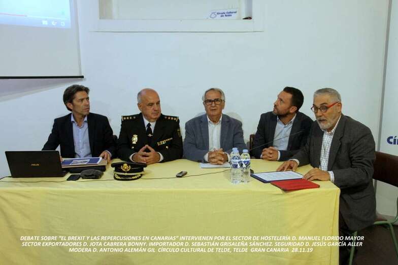 Telde.- El antiguo Molino del Conde, actual sede del Círculo Cultural de Telde, acogió el pasado 28 de noviembre un debate sobre el Brexit y sus repercusiones en Canarias. Una mesa redonda moderada por Antonio Alemán y en la que participaron exportadores e importadores, profesionales del sector turístico y también de la seguridad: Jota Cabrera Bonny, Manuel Florido Mayor, Jesús García Aller y Sebastián Grisaleña.