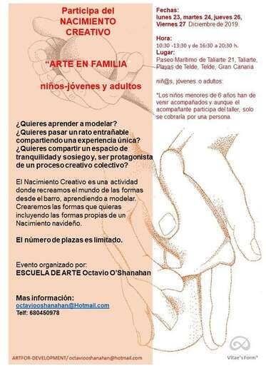 Telde.- La Escuela de Arte Octavio O´Shanahan organiza un taller de modelaje en barrio de figuras navideñas. Será la semana del 23 al 27 de diciembre, en horario de mañana y tarde.