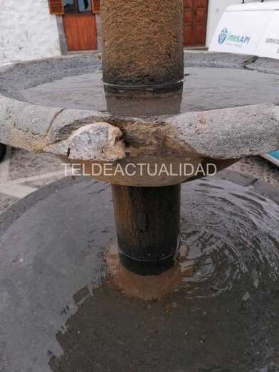 Telde.- El vandalismo se ha cobrado una nueva víctima en la ciudad de Telde, la histórica fuente de cantería azul de la plaza de San Francisco. El manantial amanecía este miércoles con daños en dos de sus piezas; el plato superior ha sido fragmentado en su contorno mientras que el inferior ha sido desplazado ligeramente de su base.