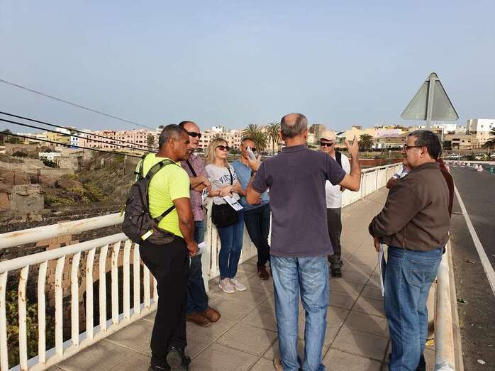 La ruta organizada por el colectivo ecologista Turcón, con el historiador y arqueólogo José Ángel Rodríguez Fleitas como guía, comenzó en las inmediaciones del Barranco de los Rios, lugar donde las crónicas fijan la construcción de uno de los primeros ingenios azucareros levantados en la primera mitad del referido siglo. Perteneció a Cristóbal García de Castillo y utilizaba el agua como fuerza motriz para moler la caña de azúcar.