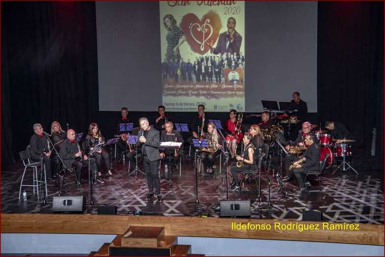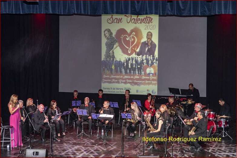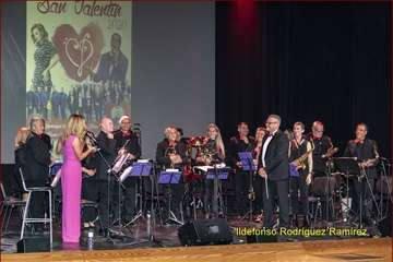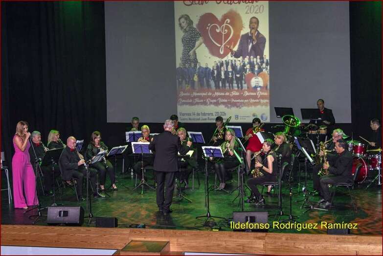 Telde.- El Teatro Municipal de Telde acogió anoche un espectáculo musical por el Día de San Valentín de la Banda Municipal con Davinia Gloria, Ismailah Tihuan y el Grupo Isleño.